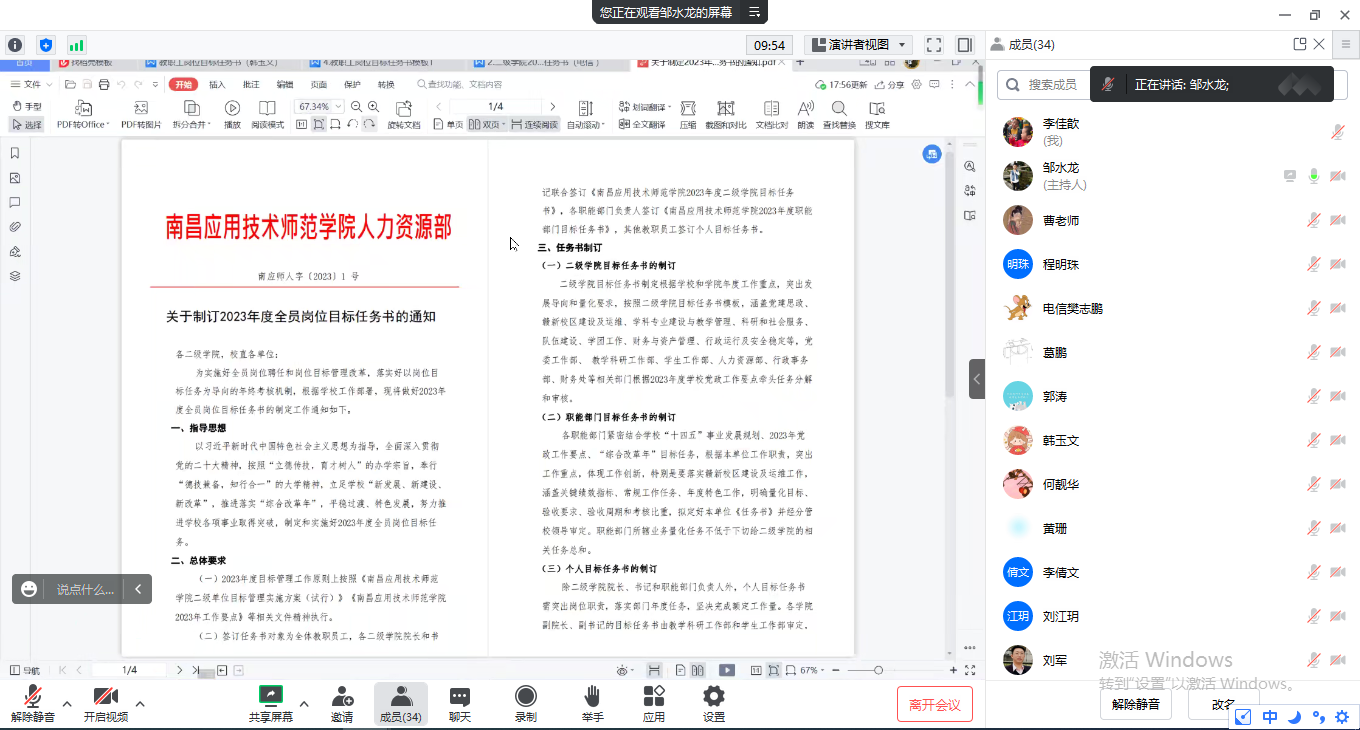 3月4日,SUNBET申搏利用腾讯会议,线上召开2023年度岗位目标任务书制订工作布置会,全体教职工参加了会议,会议由院长邹水龙主持。